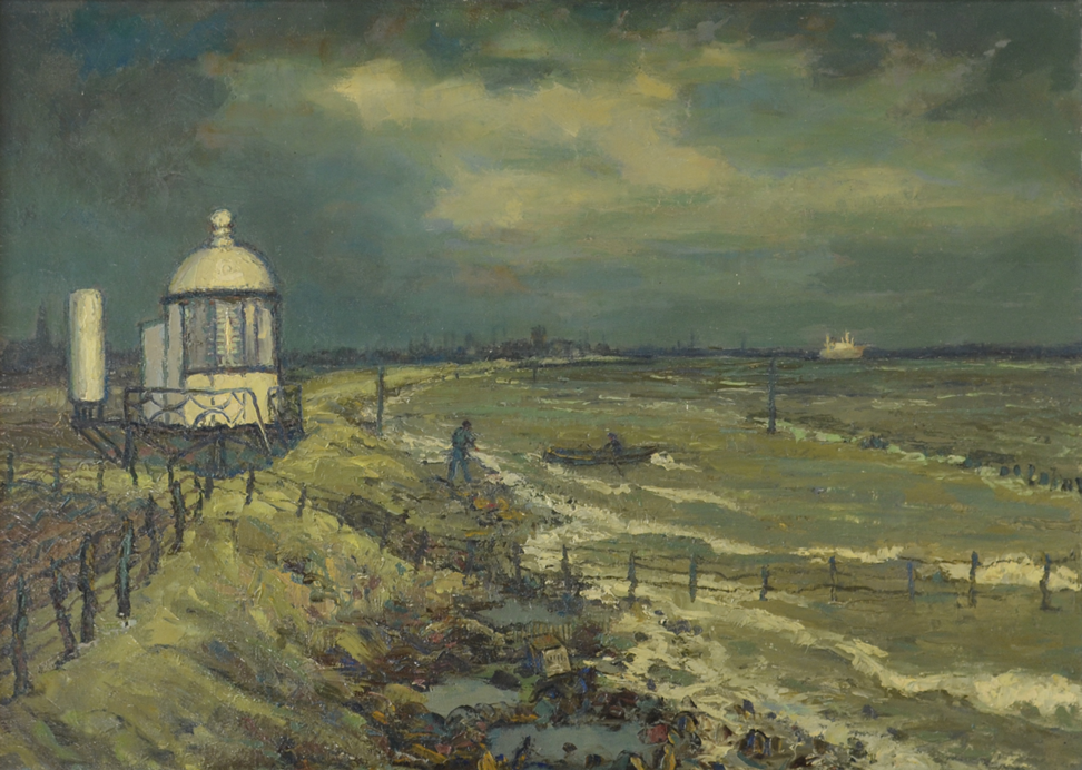 Springvloed bij Het Lage Licht, Maassluis [ 51,929069°N 4,229295°O ri.135° ] | olieverf op linnen 68x49cm | © Henk Fortuin Maassluis 1965 (Collectie Museum Maassuis 09081)