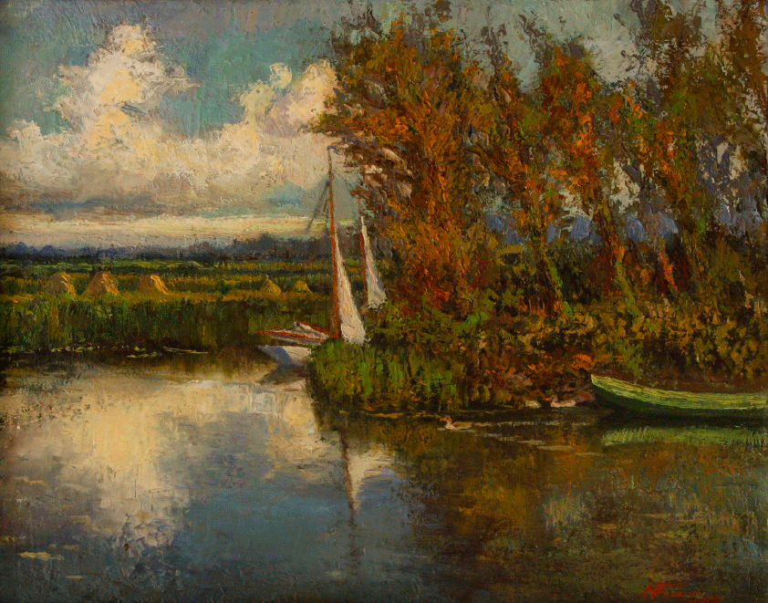Maassluis Noordvliet to nr151 [ 51,9245°N 4,2607°O ] | olieverf op doek 50x40cm | © Henk Fortuin Maassluis 1943 (particulier bezit)