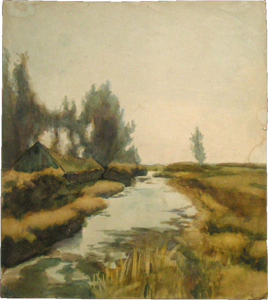 Landsmeer | Aquarel op papier 30x34cm | © Henk Fortuin Landsmeer 1943 (Stichting Henk Fortuin)