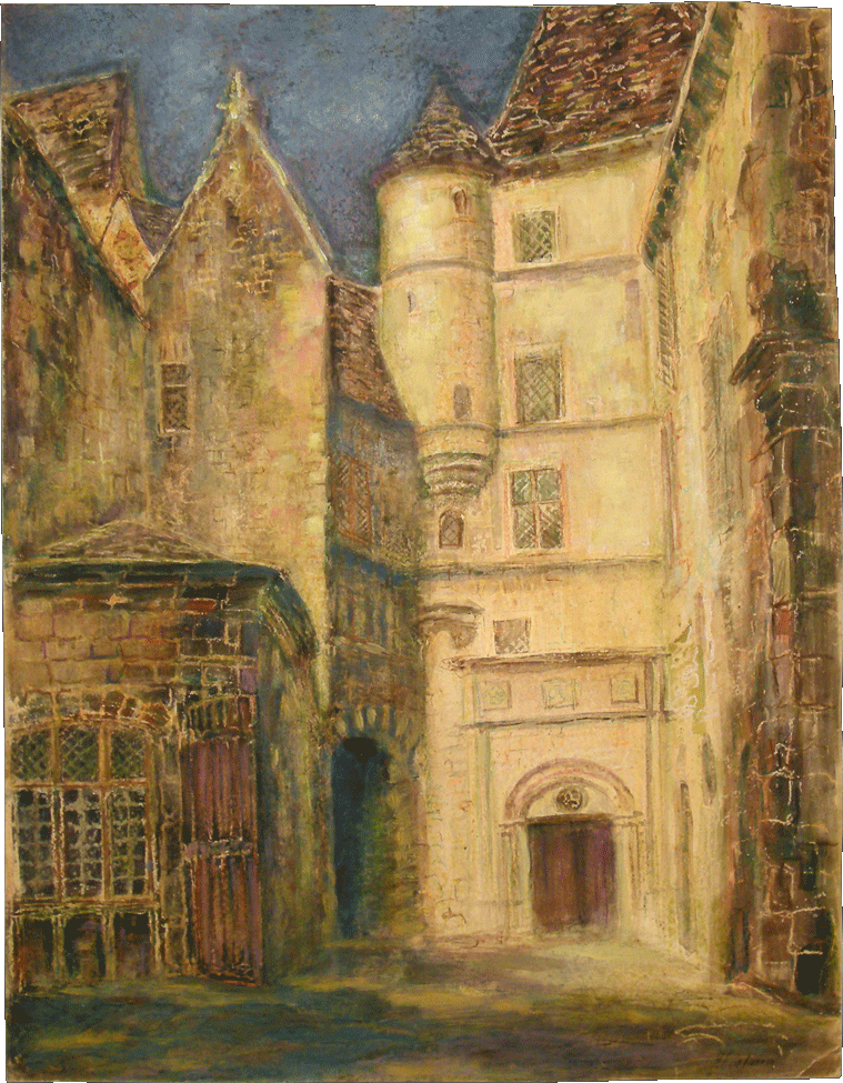 Sarlat-la-Canéda | pastel gouache op papier 51x65cm | ©Henk Fortuin Sarlat-la-Canéda 1962 (Stichting Henk Fortuin)